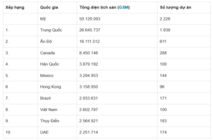 Với kết quả này, Việt Nam xếp thứ 8 trong bảng xếp hạng các quốc gia và vùng lãnh thổ ngoài Hoa Kỳ về tổng diện tích công trình đạt chứng nhận LEED trong năm.